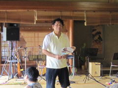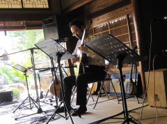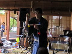 8月2日(日)〜ら30(日)日まで、西脇市の「国登録有形文化財 旧来住邸」をメイン会場に『西脇市アートフェスティバル2015』が開催されます。その開催に先立っての「オープン記念セレモニー」にお誘いいただき、演奏させていただきました。身体がどうにかなりそうなくらいの暑さの中、旧来住邸の魅力を味わいながらのLIVEとなりました。酷暑の中、記念セレモニーに参加くださったみなさま、ほんとうにありがとうござい 旧来住邸の施設案内 → こちら ← エントランスです。 |