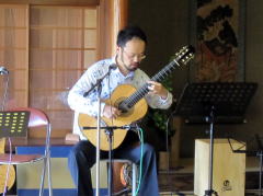| 本格クラッシックギターの演奏を聴かせてくださいました。三木市の小巻さん。 映画音楽やPOPSまじえて・・・の1曲目は、機織りの街西脇にちなんで・・・と、‘糸を繰る女’by竹井さんを。つづいては、やっぱクラッシックギターと言えばこの曲でしょう・・・、‘アルハンブラ宮殿の休日’・・・最高でした。 クラッシックのナンバーにつづいて、今度は映画音楽を。映画‘ひまわり’のテーマソング。そして、「千と千尋の神隠し」から‘いのちの名前’を。そして、ラストナンバーも映画音楽から。‘第三の男のテーマ’。映画音楽シリーズ・・・とっても親しみやすく、クラッシックギターの魅力たっぷりでした。 |