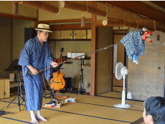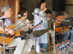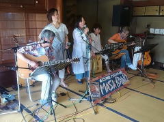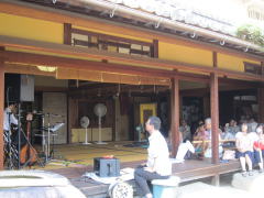 | LIVEは、こんな感じ・・・音響さんは縁側です。そして、会場内は・・・床の間や格子、調度品は、贅沢の極みだとか^^;。痛めないように、汚さないように!何しろ重要文化財ですから・・・。 =セットリスト= @ THE ROSE A Day Dream Believer B 500miles C 島人ぬ宝 D But it's all right encore:ひこうき雲、 |