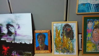 | 展示会場では、バンマス奥様の似顔絵も公開されています。その他、数々のアーチストさんの作品も見応え有です | ||||