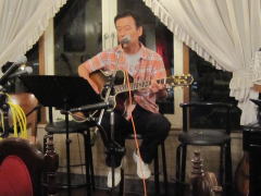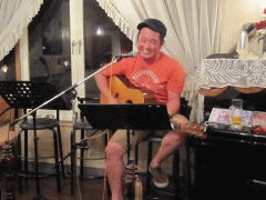 ![]() ![]() 〆は、BEGIN監修で著名なヤイリ製のミニギター「一五一会」を手に弾き語りでした。(左) 8月第4土曜会(8/22)にエントリーして、この曲含めて3曲演奏します。 |