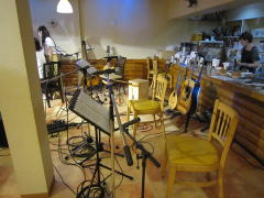 | エントランスです。コルク版でLIVE告知! | 店内は明るく清潔感たっぷりでステキ! | ステージはカウンター前のスペース! | ||