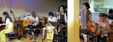 | オカリナ奏者Mさんの演奏。マイク取りしなくても、しっかりとした音量でおどろきました。 | 我々マサバンドは先日の「ぶどうの木LIVEリスト」にて演奏。バンマスさんはご友人の「M社 D-45」を。encoreでは、‘THE ROSE’。Mさんのピアノも加わり、ステキなエンディングとなりました。 | |||