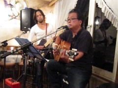 つづいては、沖縄のシンガーji ma maさんの‘さんぽ’を。三拍子の心地よい楽曲でした。いつ聴かせていただいても、Mさんのダンディーな歌声とやわらかい音で奏でるエレキサウンドがとてもマッチして、ゆったりとした気分にさせてくださいます。そうそう、ファッションもいつも、ステキでいかしてます。あっという間の2曲。「これで終了〜」。えっ〜・・・。今夜も「もうちょっと・・・」「もう1曲ぅ・・・」の声もありましたが、ここまでとなりました。 |