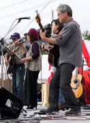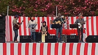 | 23日は「金比羅祭り」LIVE。22日〜23日にかけて行われる恒例の祭礼です。22日は夜、23日は昼の音楽イベントというか野外舞台イベントでした。 22日の夜から雨が降り出し、23日の野外ステージイベントは開催自体危ぶまれていましたが、主催者?出演者?の精進のたまもので、好天へと好転^^v!。ちなみに、これまで、いくら暖かい年でも「金比羅さんには雪が舞う」・・・そんな風にいわれてきました。地元では、ほんとうに昔からつづく大・大・大イベントなんです。 ベル・ウッドさんともご一緒させていただき、マサバンド&アイボリー・ムーンのジョイントで演奏させていただきました。 |