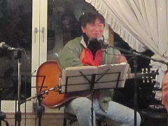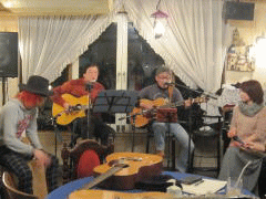 | ヒットスタジオでは、ひと組1曲限定でしたが、今宵は定例会。それぞれ数曲をコーディネイトして演奏・・・という、いつもの形式での展開でしたので、みなさんの個性やそのパフォーマンスの楽しさを十分に堪能できました。わたくし‘や’もSさんのお誘いを受けて、亡きEAGLESのメンバー、グレン・フライさんを偲びつつ、EAGLESナンバーを演奏させていただきました。 | ||||||||