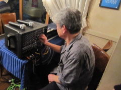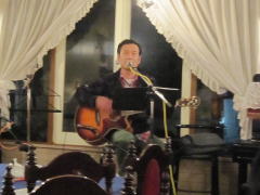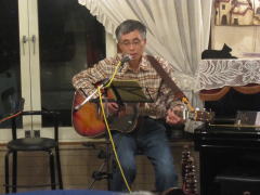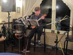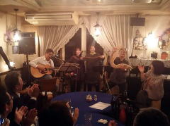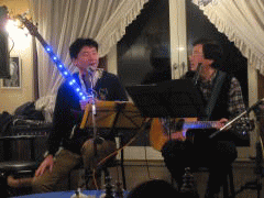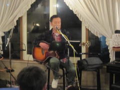 | でもでも、そんな悪天候にもめげず、今宵もたくさんのアーチストさんが集結!。ギタークラフトマンYさんのご友人一行様がお越しくださり、会場は大いににぎわいました。 |