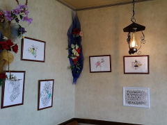 ぶどうの木では、地元アーティストさん中心に、随時『店内ギャラリー』を開催されいます。現在は「高田さんの切り絵展」開催中です。ぜひぜひ、足を運んでご覧になってください。繊細でかわいく、あったかい作品ばかりです。 |