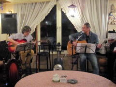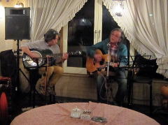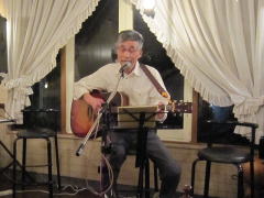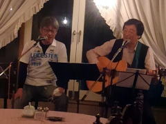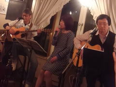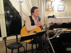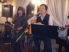 | 今宵の1曲目は、ボーカル担当Tさんのオリジナルで‘175R(イナゴ・ロード)’。そして、E.Claptonさんの‘Wonderful tonight’。ともにお二人の代表曲といえる楽曲です。絶えず新しい曲を練習して・・・という新鮮な気持ちを持ち続けることは、とても大切なことではありますが、なかに「こなれたナンバー」を持ち合わせているというのも、LIVEをする上では必要なことだと感じさせられます。 | ||||||||