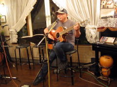 | ラストナンバーもギターインスト。「え〜、タイトルは何やったヶなぁ???」・・・の、逸曲‘Georgia on my mind’by Ray Charlesさんでした。こうした、インストもんを弾かれると、Yさんの高いギタースキルが垣間見えます。ちびっ子オーディエンスもいらしたので、子どもさん向けに「アニソン インスト」とも思いましたが、今宵は、シックな大人のインストで・・・^^。 | |||||||||||||||||||||||||||||