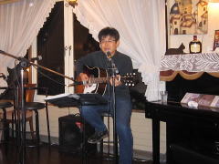 そんなお話にちなんだ歌を・・・とのO師匠の言葉を受けて、即興で一曲・・・大阪府警の醜態を嘆く、人権を考える歌、でした。ほんとに超・超メッセージソングでした。これが即興なんですから、すごいの一言に尽きます。 |