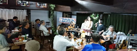 | 第2部は、がっつりとバンド演奏。今年になってからのLIVEで演奏させていただいた中から、とくにコーラスの楽しめる楽曲をチョイスして聴いていただきました。 |