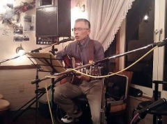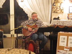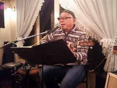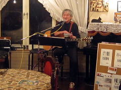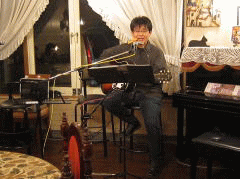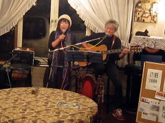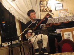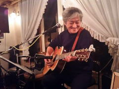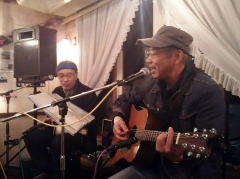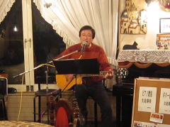 まず、1曲目は、‘君住む街に’by西岡恭蔵さんを。つづいて、前回のLIVEでも歌ってくださったオリジナル曲を2曲。ギターのアルペジオがとてもやさしくすてきなアレンジの‘ふるさとへ’。そして、お父様に贈る歌、‘道を照らして’を。いつまでも自作曲を生みだされるTさんに敬服です。こんなこと、あんなこと、いっぱい伝えたい・・・そうした想いがとても強い方なんだなと思います。 |
