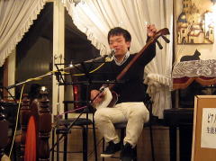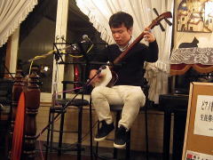 | そして、ラストナンバーは‘津軽じょんから即興曲’。即興ですから、そのときそのときのテンションが大きく影響しますね。バチさばきも見事にキレッキレの演奏でした。お見事!。 | ||