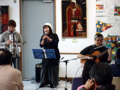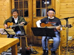 27日(日)夜には、「さかもと ふみや」さんのLIVE。LIVEのホストでありますTさんは、ぶどうの木LIVEでもお馴染み。当夜は、これまた、先々月?ぶどうの木で意気投合されたAさんとのユニットでの演奏となりました(左画)。