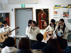 | そして、本LIVEのトリは、「県立西脇高校ギター部」のみなさん(下右画)でした。それぞれに個性ある魅力的な演奏を披露くださいました。 |