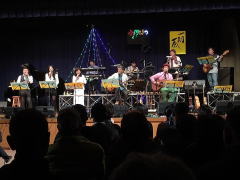 楽団演奏では、‘丘を越えて’や‘高原列車は行く’など、みなさんから手拍子をいただきながら、いっしょに歌唱できました。 |