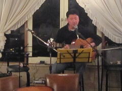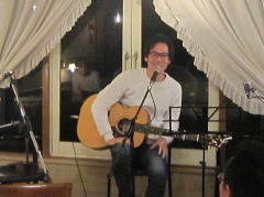 | お仕事の都合で、LIVE合流が遅くなって、ゆえにステージも遅くなって・・・のMさんでしたが、今宵は、いつもより早い出番、加えて可愛いお嬢さんのサポートも有りで、声の調子も上々^^v。‘SORRY BABY’by SIONさんにつづいて、「もう1曲いいですか・・・」と、今年のMさんのテーマソング?お気に入りの逸曲となった、竹原ピストルさんの‘よー、そこの若い(わけえ)の’を。 | ||
