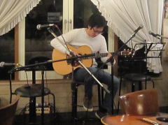 まずは、クリスマスにピッタリの曲を・・・と、‘みなし児のバラード’byアニメソングを。クリスマス???・・・???。切ないアルペジオでした。 つづいてもクリスマスにちなんで・・・というか?とある所で、サンタに扮して演奏されたとかの‘テキーラ’(ギターインスト)を。会場からの間の手は必至。♪タッタラ タラーラ・・・・・チャッチャッ・チャチャッチャ・「テキーラ」でした。 |
