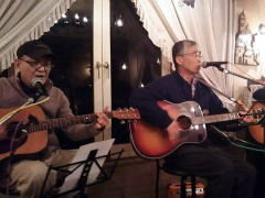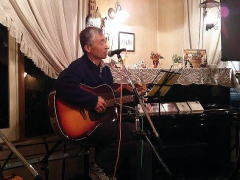 | 今年1年間、ここぶどうの木LIVEでは「同じ曲を2回演奏したことがない」・・・のFさんでしたが、今宵は、「今年一年間で気に入った曲をピック・アップ」して・・・。ということで、まずは、‘親父の歌’byイノチ崖マサルさんを。ぶどうの木近隣の北播磨田園空間でのイベントで出会われたとのことでした。 つづいては、お得意のさだまさしさんのナンバーから‘まほろば’。艶やかなハイトーン・ボイスでの熱唱でした。原キーでお歌いになれることが、まずもって凄すぎます。そして、さださんをもう1曲。‘風に立つライオン’。言葉の数がたいへん多く、本当に舌を噛みそうになる歌です。アメージング・グレースの挿入も印象的です。 |