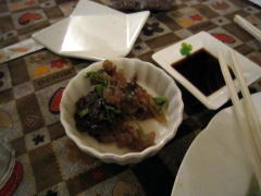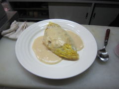 | 今宵のご馳走 左より・・・「ホワイトソースたっぷりオムライス」→「お酒の肴:スジ煮(LIVE時限定)」→「ヨーグルトサンデー」 | |||||||||||||||||||||||