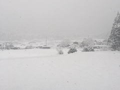 | まるで雪国(左画)〜およそ50pの積雪(中画)〜15日早朝は美景(ちなみに中央は道路):(右画) | |||||||||||||||||||||||