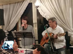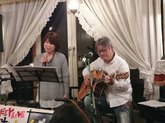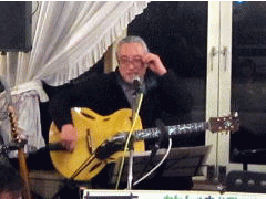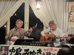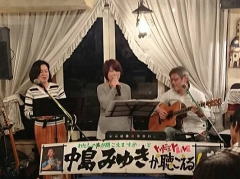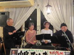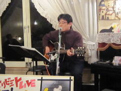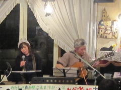 「今夜は、お題も何も知らずに来ましたので・・・たぶん、中島みゆきさんが好きだったであろう曲を演奏します」と機転の利いたMCで曲紹介を。スタンダードと言える‘冬の星座’につづいて、ビリーバンバンさんの歌唱、お酒のCMでヒットした‘また君に恋してる’を。 |