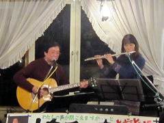 | そして、これまた、数多くのミュージシャンがカヴァーしている‘神の河(Water is wide)’を。みなさんもよくご存じのオカリナ。陶器製なので、ピッチ、いわゆるチューニングを揃えるのがなかなか難しい楽器なのですが、息のあった演奏、ハーモニーを聴かせてくださいました。 | ||||||||||||||||||||||||||||||||