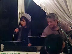 | ここで、もうお一方、ボーカルさんを招いて・・・新ユニット「小林家に来客」(右画)です。3人でお届けしましたのは、TV主題歌‘空と君のあいだに’。そして、バブル期まっただ中によく聴いていた‘悪女’。それぞれ、絢香さんバージョン、明菜さんバージョンを耳コピしてみました。みゆきさんオンリーのリストでした。 | ||||||||||||||||||||||||||||||||