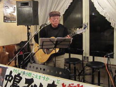 | そして、2曲目は、Sさんの弾き語り。今宵お見えになっている、オカリナグループのご友人さんが大好きな曲だとのことで‘22才の別れ’by伊勢正三さんを。前出のI さんではありませんが、不肖わたくし‘や’がはじめて練習した曲がこの曲でした。イントロのリードギターにはしびれる逸曲です^^v。 | ||||||||||||||||||||||||||||||||