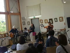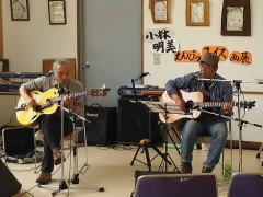 | バンマスさん仕切りのLIVEですから、我々マサバンドがホストバンドに当たるのでしょうか?・・・ということでで皮切りステージとなりました。そして、弾き語りの藪さん〜クラリネットクインテット・・・虹の音のみなさん。昼食をはさんで、ラベンダーのジモティー、アイボリームーンさん、そして、まるでスナフキンのTammyさん、トリは、「蕎麦街道LIVE」でお世話になっているペーパームーンさん・・・と、楽しい演奏の数々でした。お越しくださった方々、本当にありがとうございました。 | |||||||||