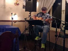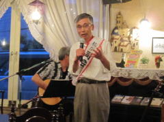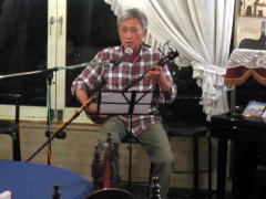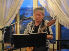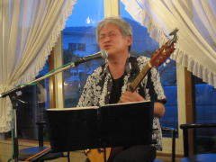 軽快なストローク&ライトな歌唱でバッチリ決まったところで、「では、お後も楽しんで・・・」のバンマスさんに、横月さんから「もう1曲なんかぁ・・・」のリクエスト。・・・にお応えして、ナターシャさんの‘野茨と鳩’を。 |